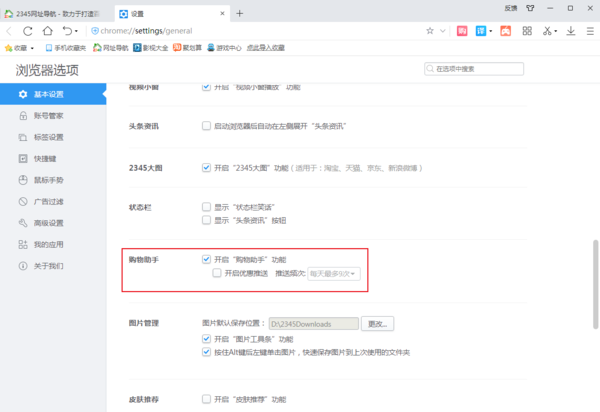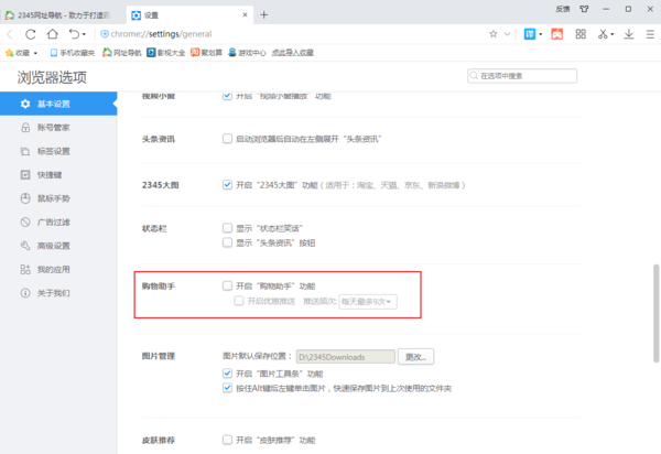 对于不需要使用购物助手的用户,也可以直接将购物助手功能取消勾选。