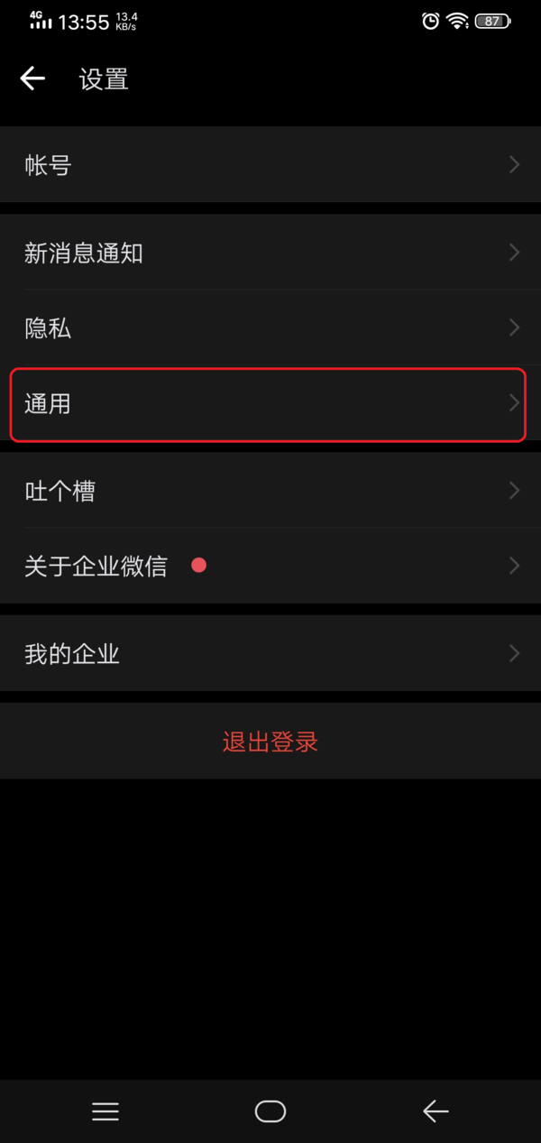 第三步,进入到企业微信的设置界面后,找到【通用】功能,并点击进入。