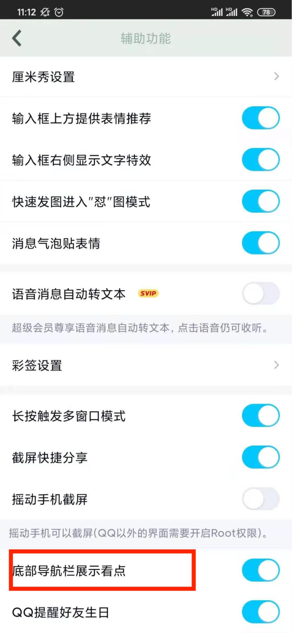 再回到腾讯QQ主界面后就可以看到下方导航菜单栏的看点选项消失了,如果想再打开仍是需要返回辅助功能处打开看点。希望这篇文章可以给大家些许帮助!