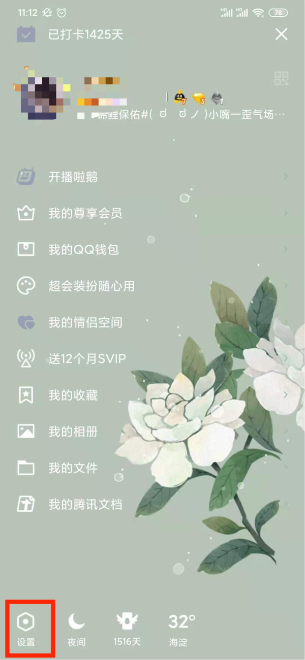 第一步,打开QQ进入主界面,向右滑动界面打开个人页面;