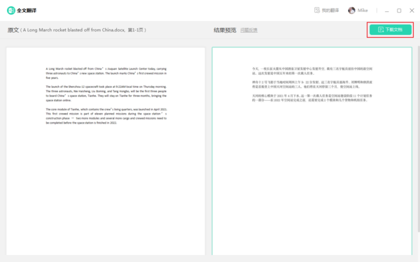完成文章的翻译后,点击下载文档即可。