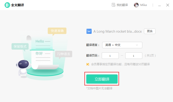 等待翻译工具加载文章后,点击立即翻译。