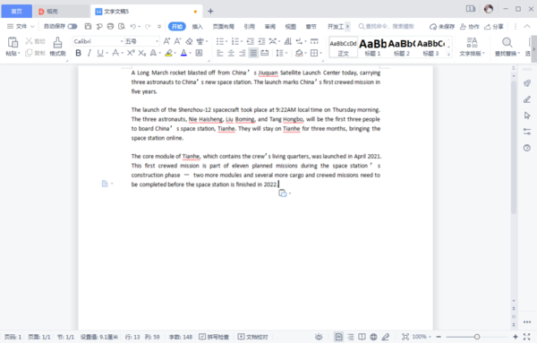 首先打开WPS,将需要翻译的文章粘贴到Word中。