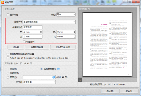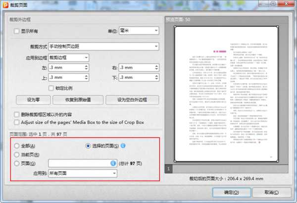 完成裁剪设置后,选择裁剪的页面范围,之后点击确定即可。