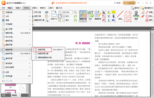 打开文档后,点击工具栏中的文档,选择裁剪页面功能。