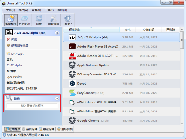 首先打开Uninstall?Tool,在左侧输入需要查找的程序名称。
