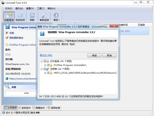 软件卸载完毕后,Uninstall?Tool会扫描软件的关联文件和注册表并进行删除,点击完成即可。