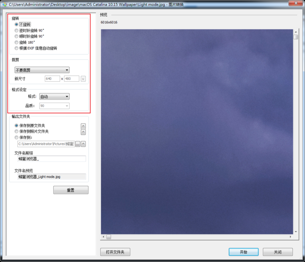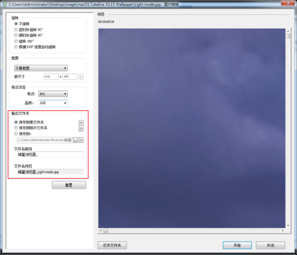 设置好图片的转换格式后,在下方选择图片的输出文件夹和文件名前缀。