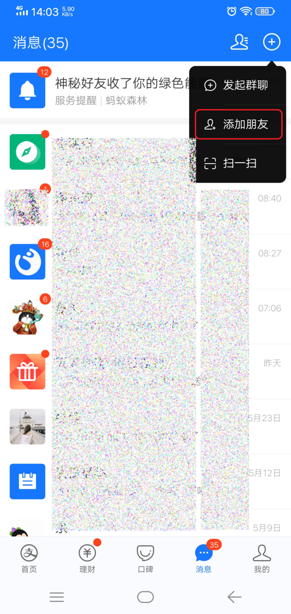 第六步,当然了,在添加朋友的界面中,我们还可以选择【扫一扫】功能,这样我们直接扫描对方的支付宝二维码,就可以直接将对方添加为我们的好友了。