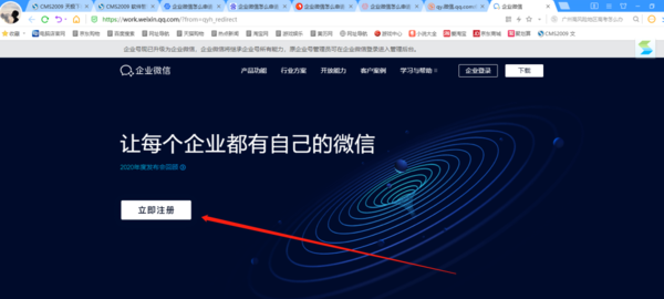 1.?打开企业版微信号申请网址qy.weixin.qq.com点击,企业注册按钮。