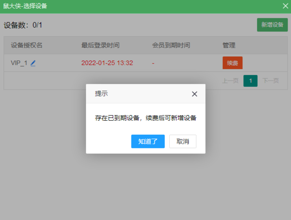 首先,如果我们想在鼠大侠鼠标连点器的多设备管理模块上添加设备,那需要开通鼠大侠的会员才可继续进行。如果我们已拥有会员或成功开通会员,那么根据鼠大侠的提示,完成后续的添加设备操作即可。