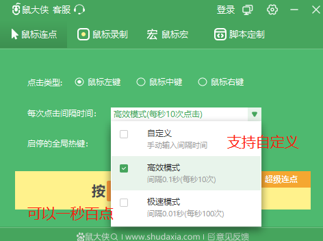鼠大侠鼠标连点器的连点功能可以实现一秒百点击吗