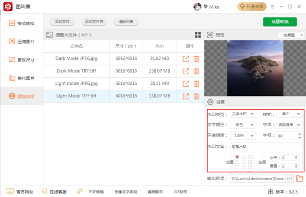 以上就是使用图叫兽为图片批量添加水印的方法,借助图叫兽这款软件,我们可以非常快速的给图片添加水印,同时保证水印的大小和位置完全一致。