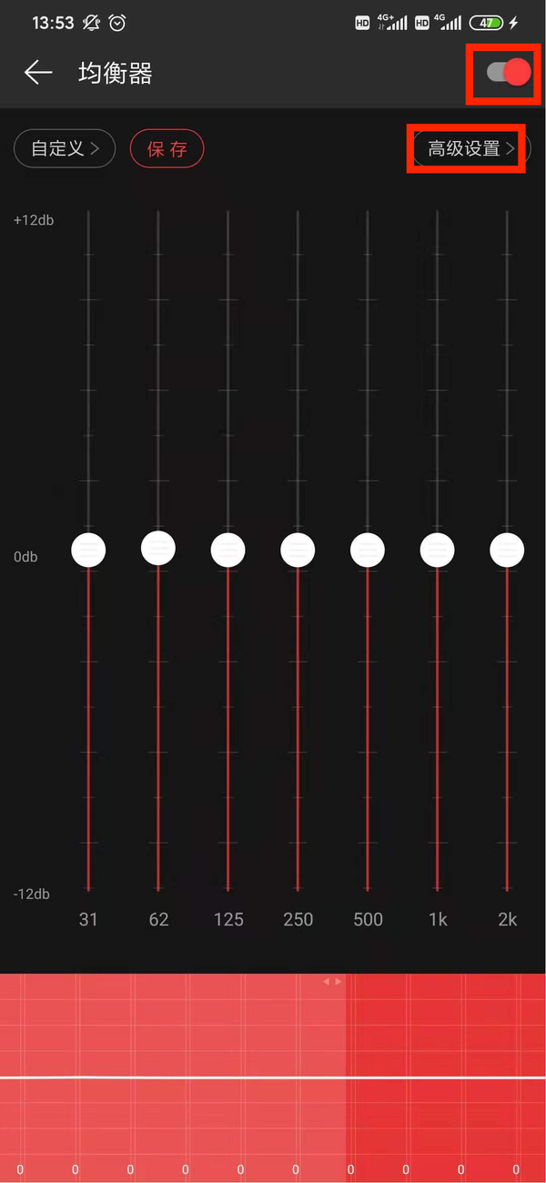 第四步,选择均衡器将均衡器设定为开启状态;