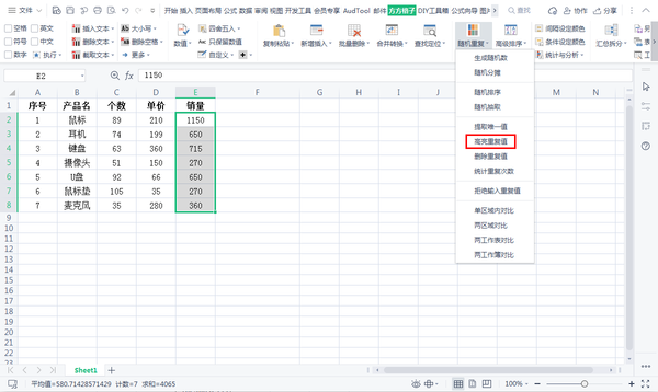 点击菜单栏中的方方格子,选择功能栏中的随机重复。