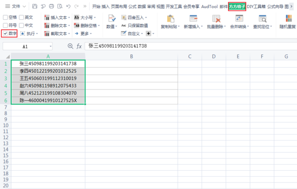 以上就是使用方方格子快速提取单元格中数字内容的方法,除了数字内容外,方方格子还能提取单元格中的英文、符号、中文等内容,非常方便快捷。