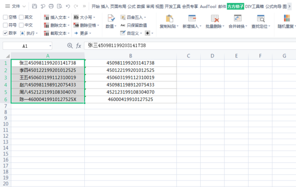 工作中我们经常会使用Excel表格记录信息,比如员工信息、联系方式等等,很多时候员工的姓名和联系方式会录入到一个单元格中,对后续整理造成不便,这时候我们可以借助方方格子将单元格中的数字内容提取出来。