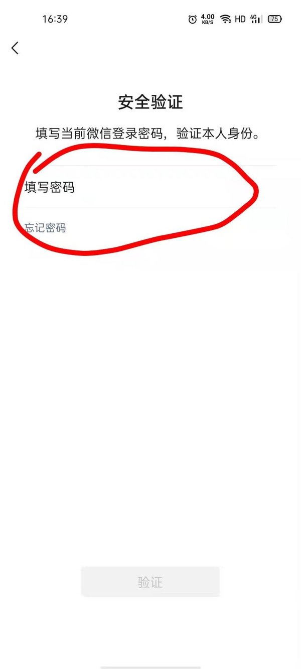 然后需要进行身份验证,也就是输入一下微信账号登录密码即可。