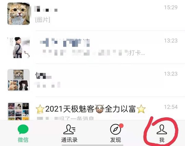 第一步,打开微信进入首页,然后点击右下角的【我】进入到个人主页。