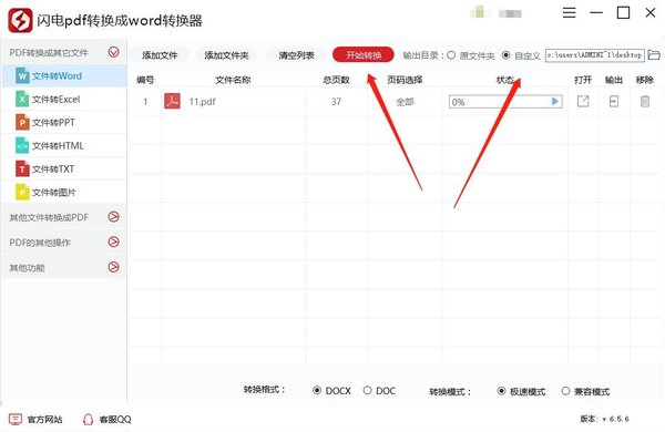 四、根据指引将文件添加进来后,需要自定义一个存储路径,然后在点击“开始转换”按钮?。