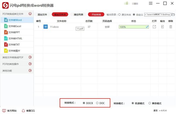 五、转换过程中需要耐心等待一段时间,请用户们耐心等候,操作界面下的转换格式我们可以在转换钱更改,一般默认为DOCX格式。