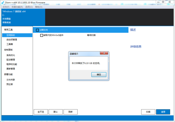 在电脑垃圾文件过多时,我们可以借助Dism来进行清理,首先打开Dism,点击左侧的空间回收。
