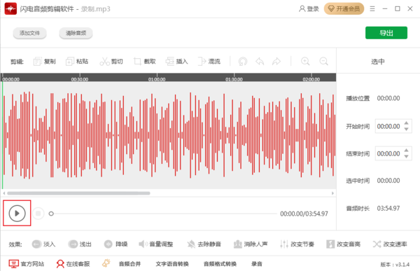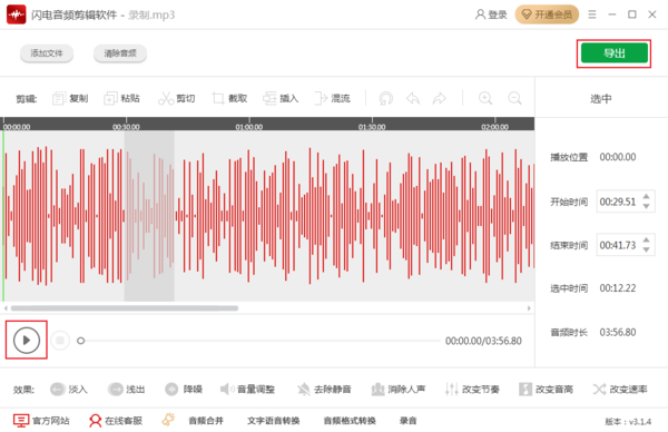 点击下方的试听,检查音频调整后的播放效果,如果对调整结果满意的话,点击导出即可。