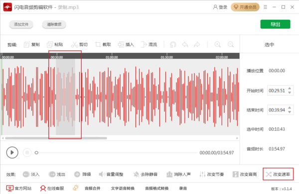 以上就是使用闪电音频剪辑软件改变音频播放速度的方法,如果第一次调整并没有达到理想效果的话,可以继续重复以上步骤,直到调整满意。