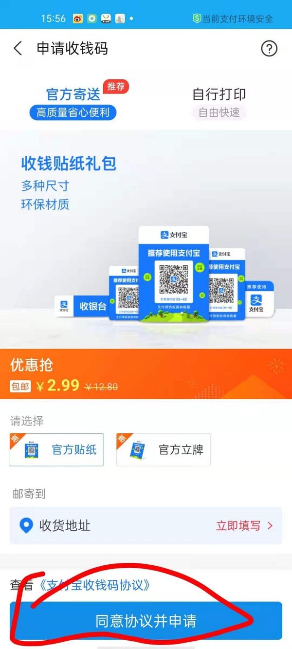 第三步,点击页面下方的【同意协议并申请】按钮,剩下的就等着收一个支付宝收款码吧。