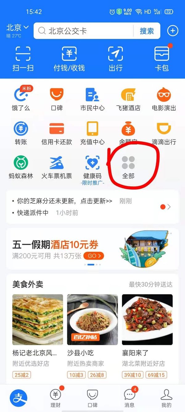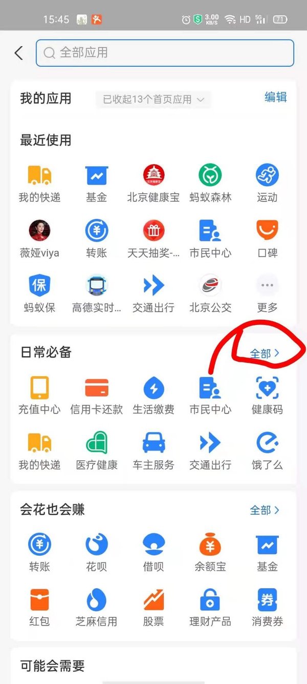 第一步,打开支付宝,在首页上方显示的一众应用中,点击选择【商家服务】,如果像小编这样没有的,就点击最后一个【全部】按钮。