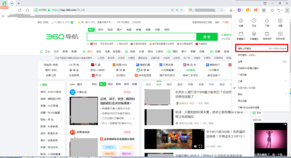 3、点开【打开菜单】选项,弹出下拉菜单,选择【清除上网痕迹】;也可以直接使用快捷键【Ctrl+Shift+Delete】打开清除上网痕迹对话框;