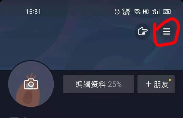 第二步,这就进入到自己的主页了,点击右上角的三道扛【三】形状的按钮。