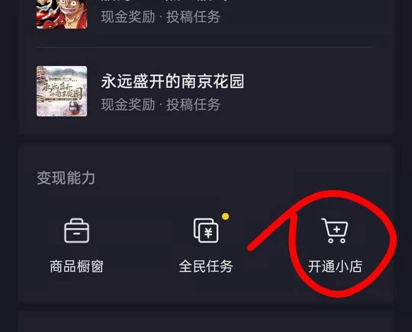 第四步,在【变现能力】模块下的第三个选项,就是【开通小店】按钮,点击即可进入。