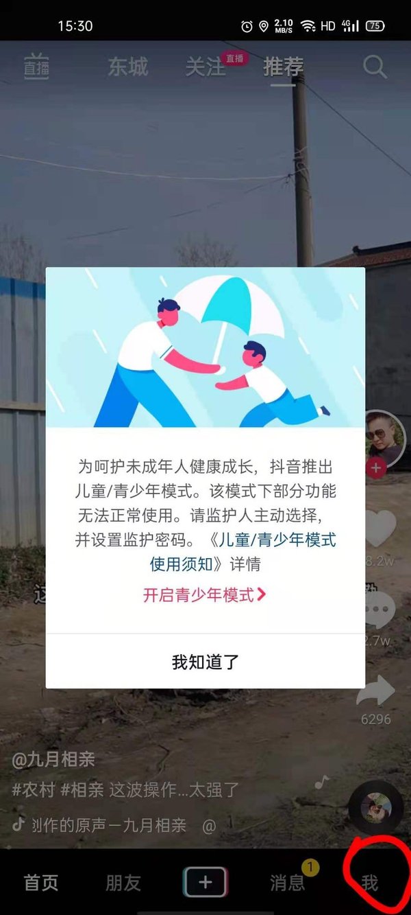 第一步,打开抖音视频,点击右下角的【我】按钮,一切操作都是从我开始。