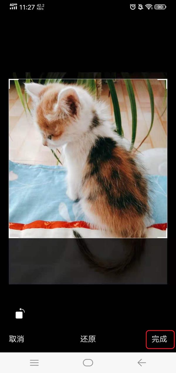 第八步,照片选择好以后,我们就进入到照片裁剪的界面了,在此界面中,我们按照自己的实际需求来调整图标,最后点击【完成】。