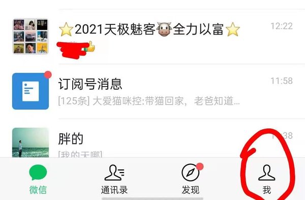 第一步,打开微信进入到主页之后,万年不变的套路,点击右下角的【我】按钮。