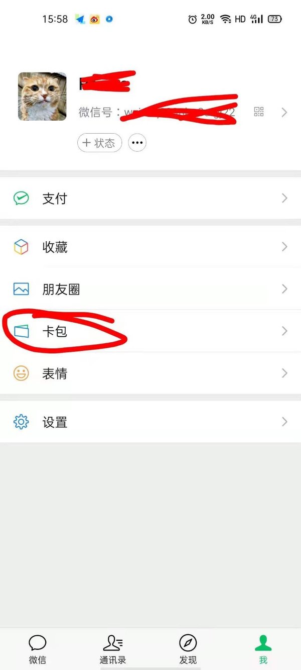 第二步,在新页面的中间位置,有一个叫【卡包】的选项,点它。