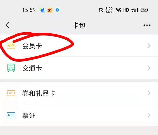 第三步,在卡包的众多选项中,我们点击选择第一个【会员卡】,没错了,你的电子身份证就在会员卡选项下面,打开就可以查看,小编在这里就不给大家展示了哈哈哈。