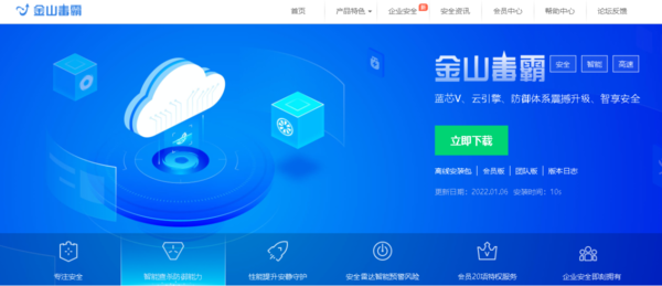 下载途径二:在浏览器上搜索金山毒霸官网,进入官网后,在首页上方就有下载按钮,点击“立即下载”键开始下载就行了。不过要注意是,个人使用的话,不要下载成了企业团队版的哦。