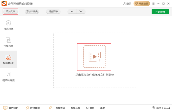 首先打开金舟视频格式转换器,点击左侧的视频转gif。