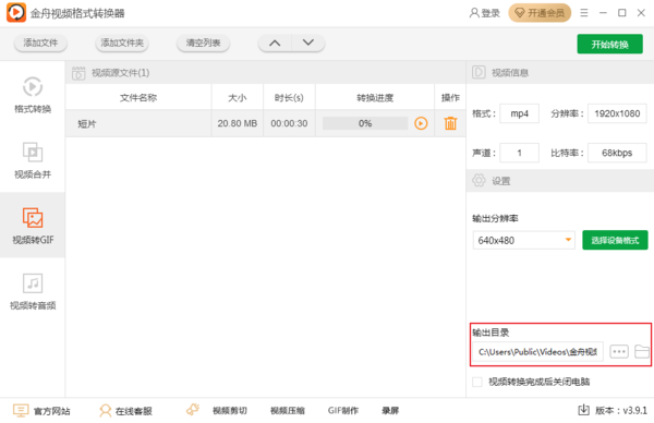 点击开始转换后,系统会自动将视频转换成gif动图。需要注意的是,部分网站和社交软件对图片文件大小进行了限制,因此输出分辨率建议选择640p或320p。