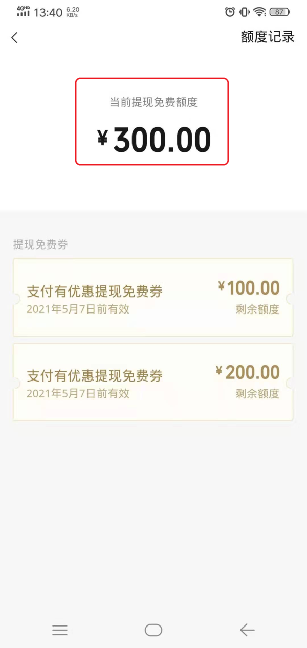 第八步,最后我们就可以看到自己当前的免费提现额度了。