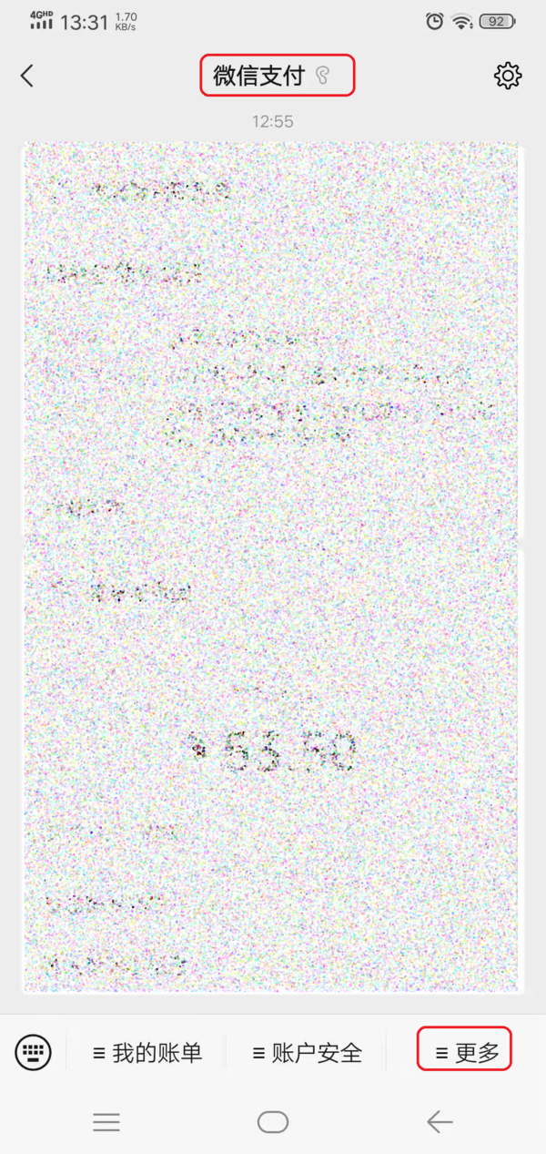 第一步,在自己的微信的列表中,找到【微信支付】公众号,然后打开公众号,接着点击界面右下角的【更多】选项。