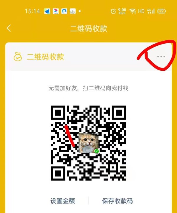 第四步,进入首付款页面,点击中间位置的【二维码收款】,点击收款二维码右上角的【三个点】按钮。