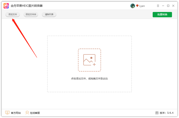 步骤一、打开软件,在左上方选择“添加文件”将需要转换的HEIC图片上传到这里;