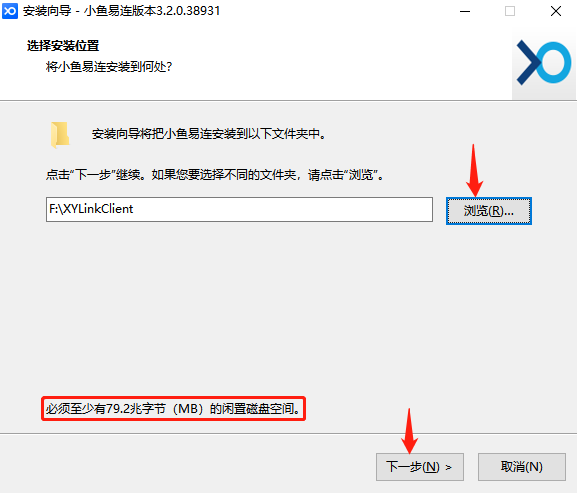 第一点,在安装小鱼易连时,需要保证磁盘空间充足,不然可能会因为磁盘空间不足从而导致安装失败。这里在安装过程中,也有提到“必须拥有至少79.2MB的闲置磁盘空间”。所以还是需要大家注意的!