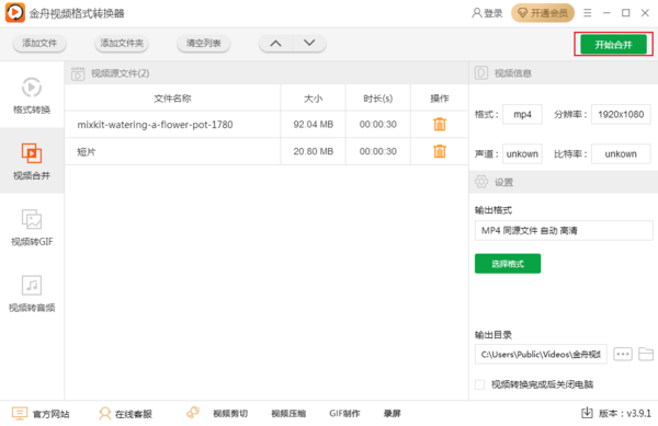 很多人在拍视频的时候都会采用分段录制的方式,一来避免视频时间过长,二来避免录制多余的片段。在完成全部视频的录制后,接下来就是将它们合并到一起,对于不会用剪辑软件的朋友来说,我们可以借助金舟视频格式转换器来进行合并。