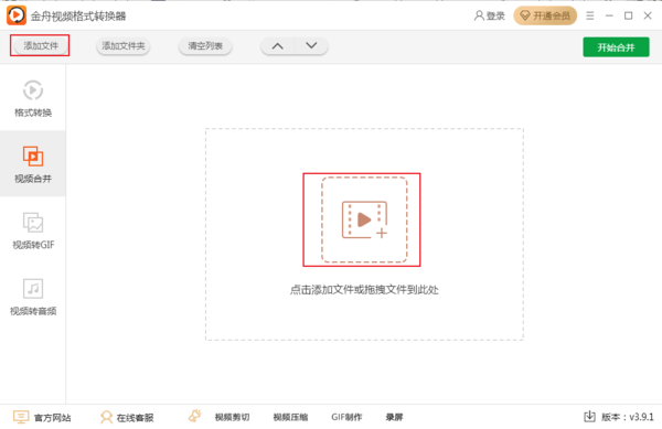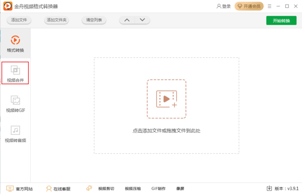 首先打开金舟视频格式转换器,点击左侧的视频合并。