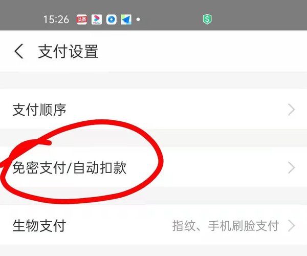 第四步,进入到支付设置页面之后,点击【免密支付/自动扣款】这一项。