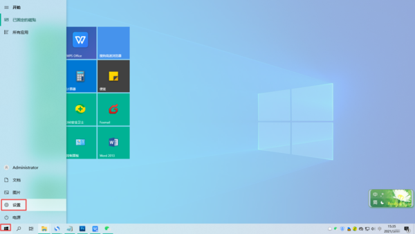 第一步,在电脑桌面的左下角,找到【开始菜单】按钮,然后点击打开,接着在弹出的选项中找到【设置】选项,并点击打开。